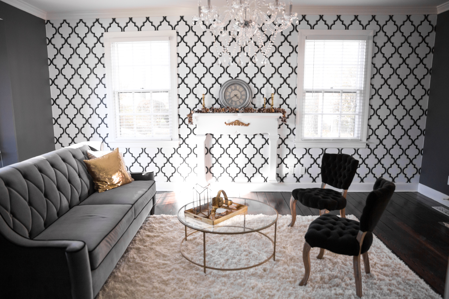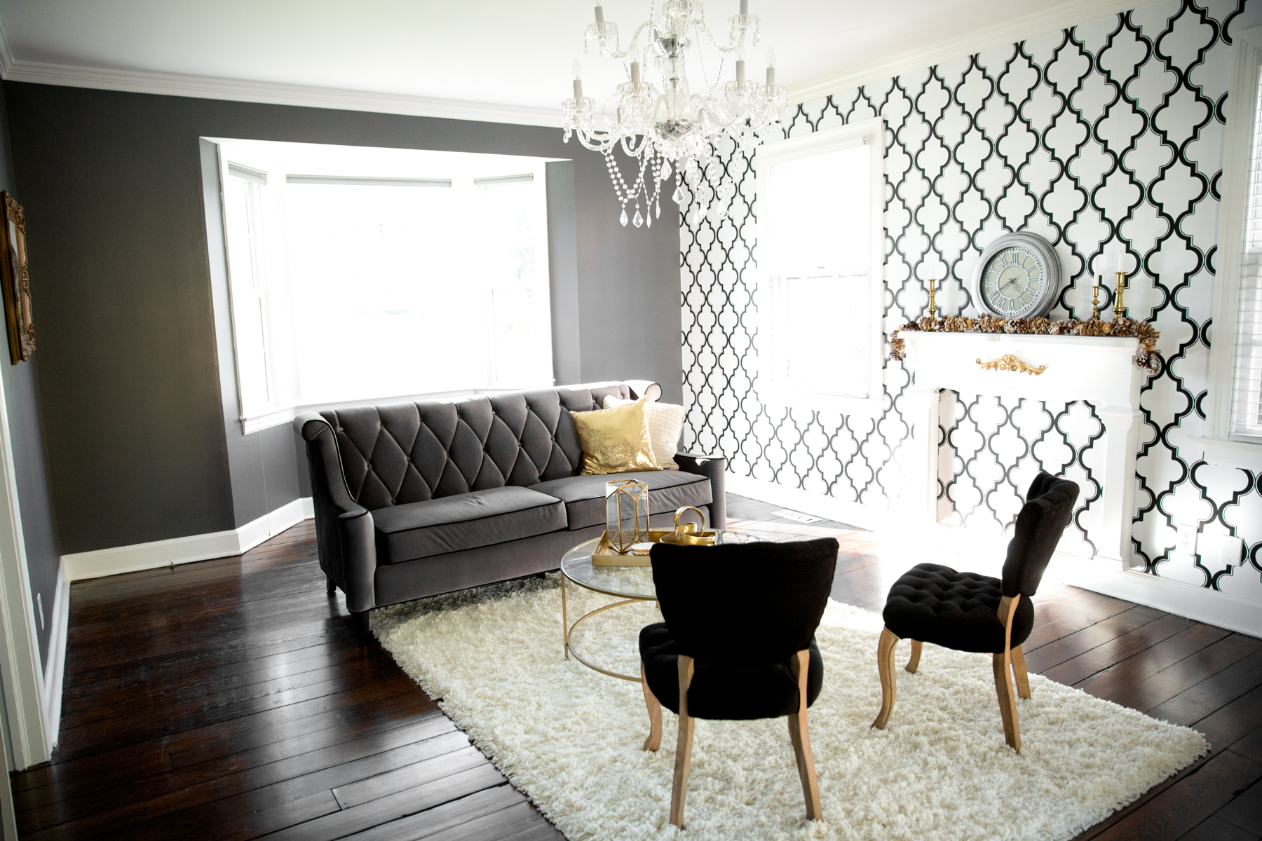 This room has my FAVORITE color palette: black, white, and GOLD! I wanted it to look simple, but very luxurious!
