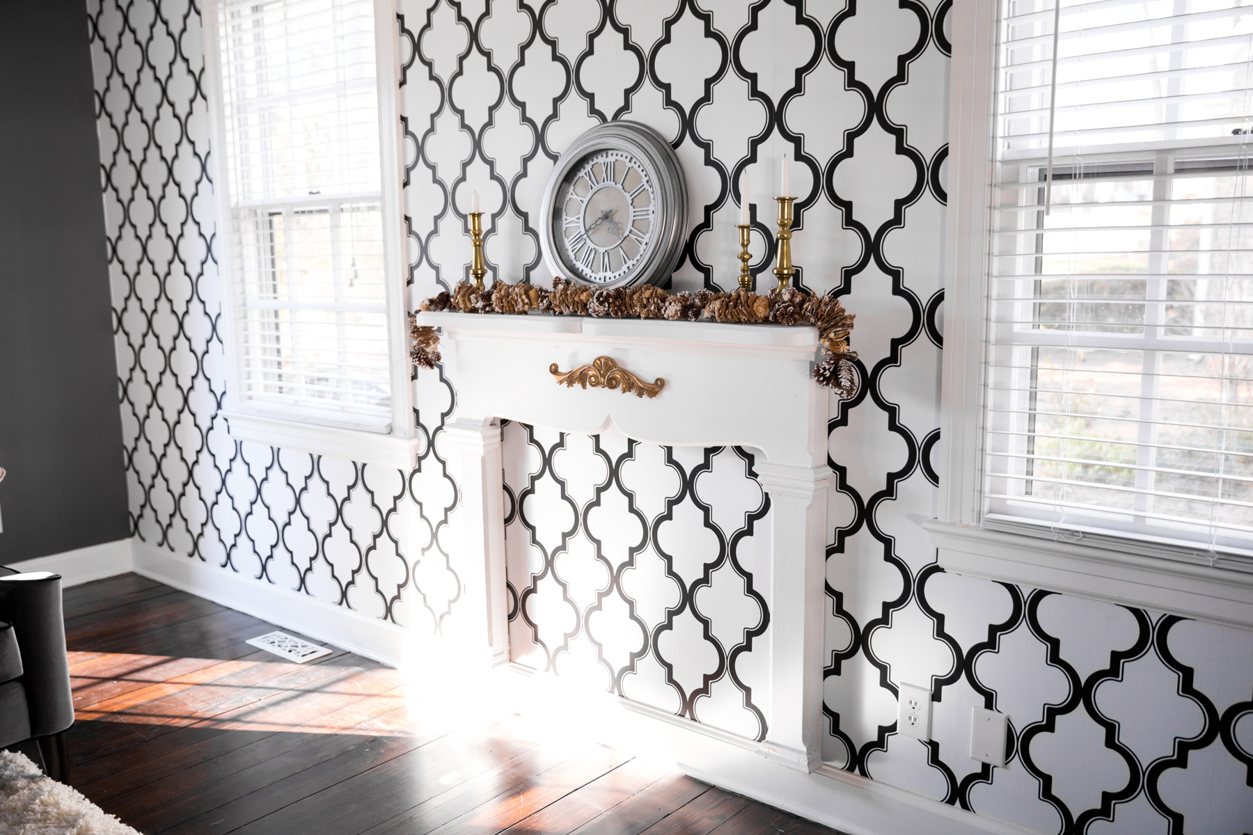 Another AMAZING FIND was the mantle. I was given the 1880’s farmhouse fireplace mantle by my sister-in-law’s family, and it fit the narrow space like it was CUSTOM MADE for it!!!! Phillip helped me clean, re-build, and paint it, so it’s in great condition.