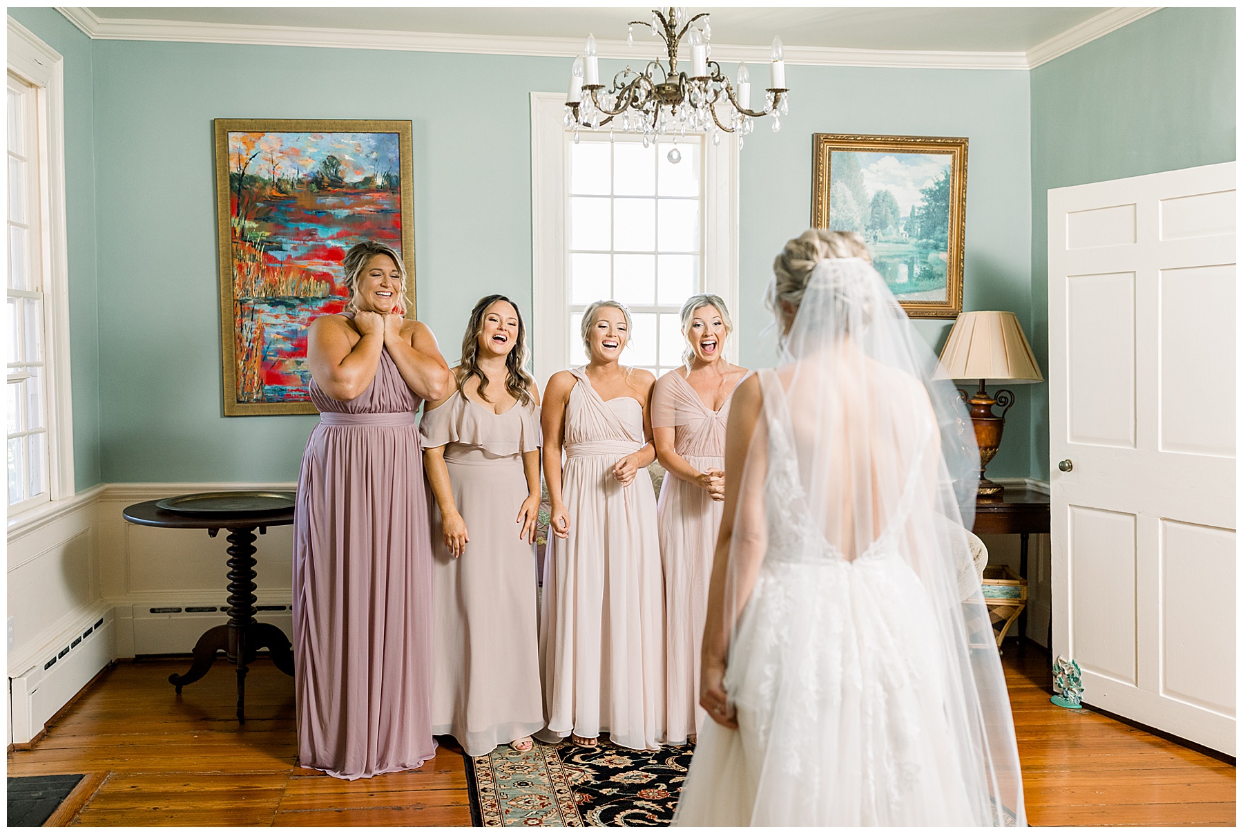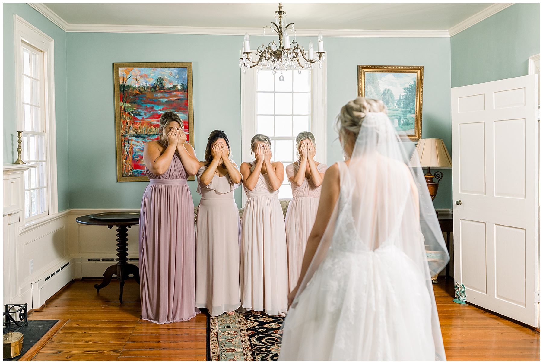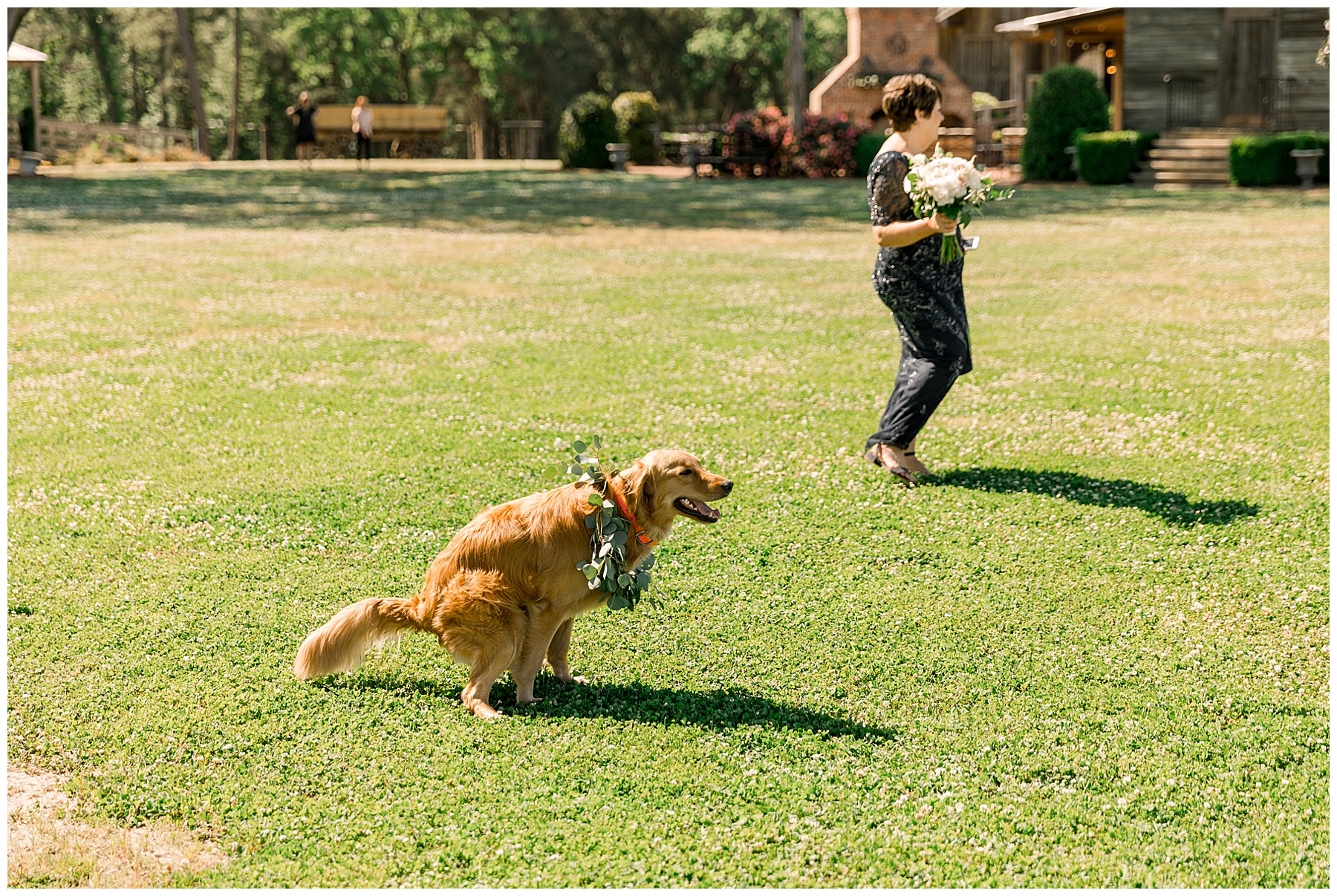 All the girls were hanging out at the main house getting glammed by the amazing talent of Makeup by Emma and Hair by Tori Catherine. The bridesmaids were all so sweet and fun, and two of them were also brand-new brides themselves!!! Whitney looked absolutely breathtaking, and she had sweet first looks with her gals, her daddy, AND her two pups! (Be sure to scroll down and see what her golden retriever Molly did during the First Look haha!)