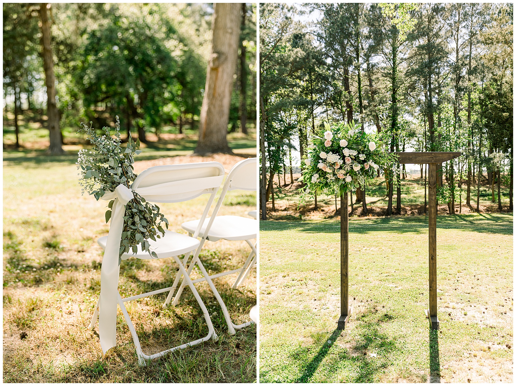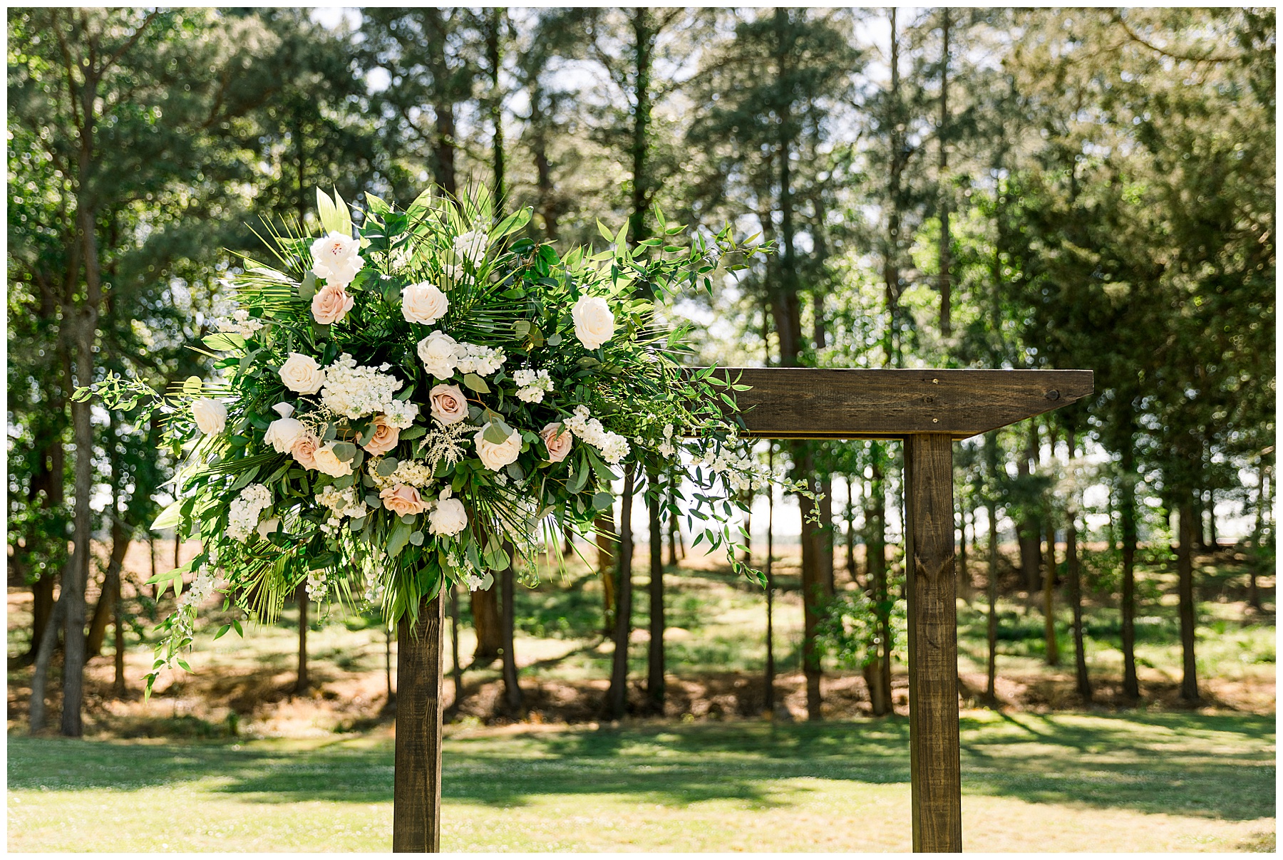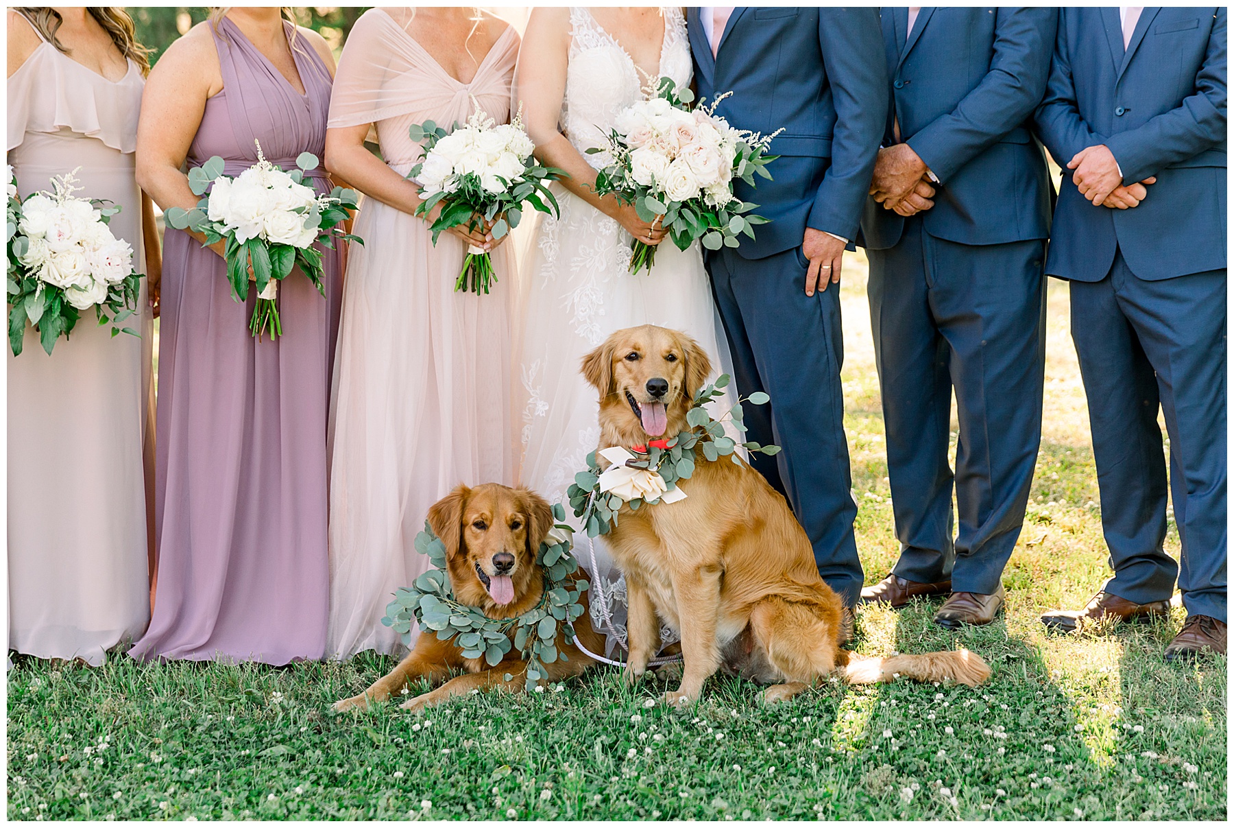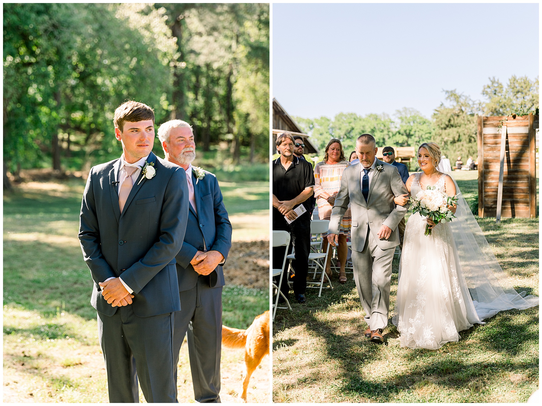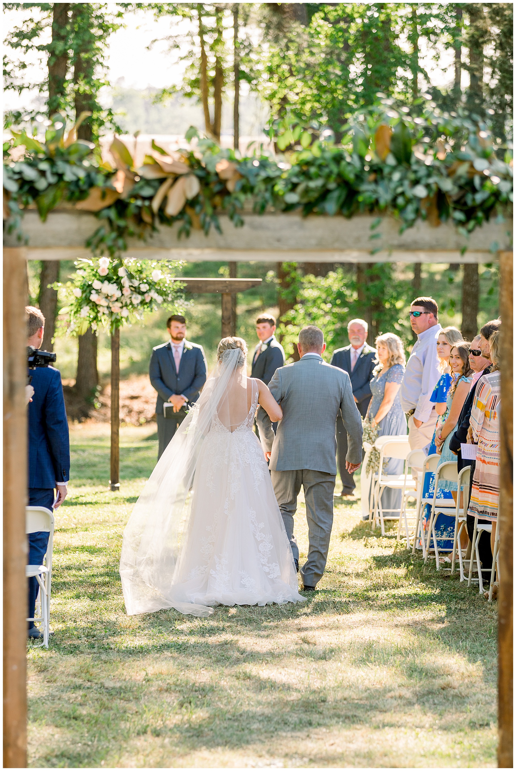 The ceremony was beautiful underneath the trees. Whitney’s dad built a beautiful arbor for them, and it had a gorgeous floral arrangement! Bobby’s cousin officiated the ceremony, and even the pups were included!