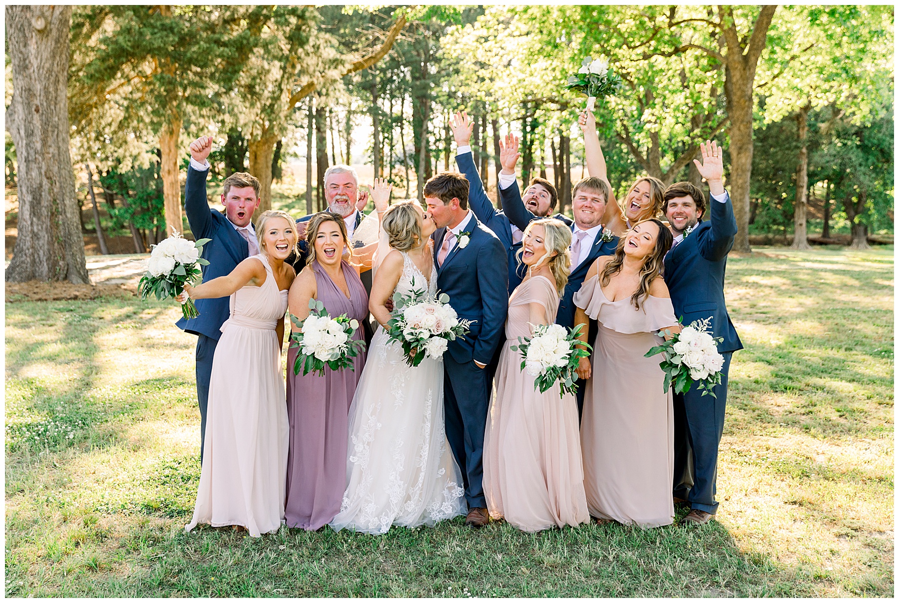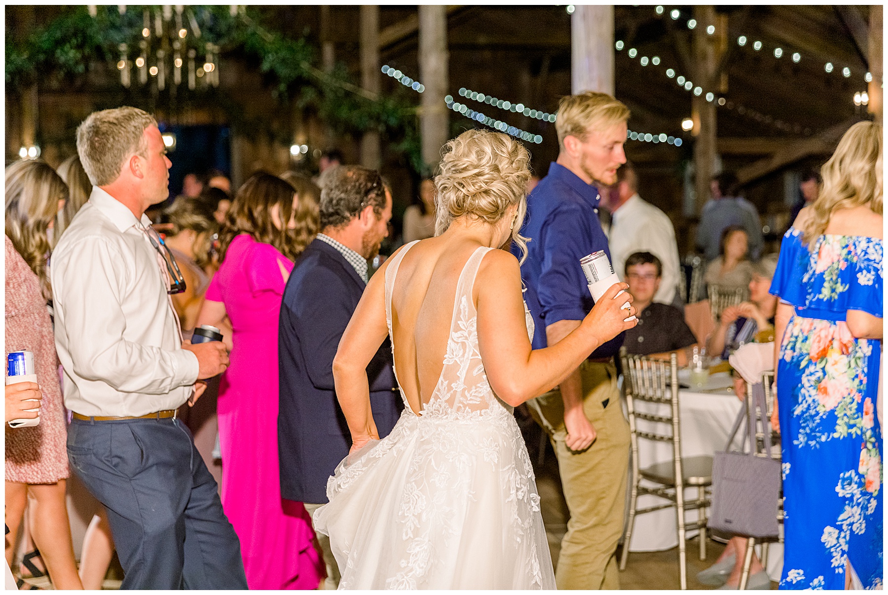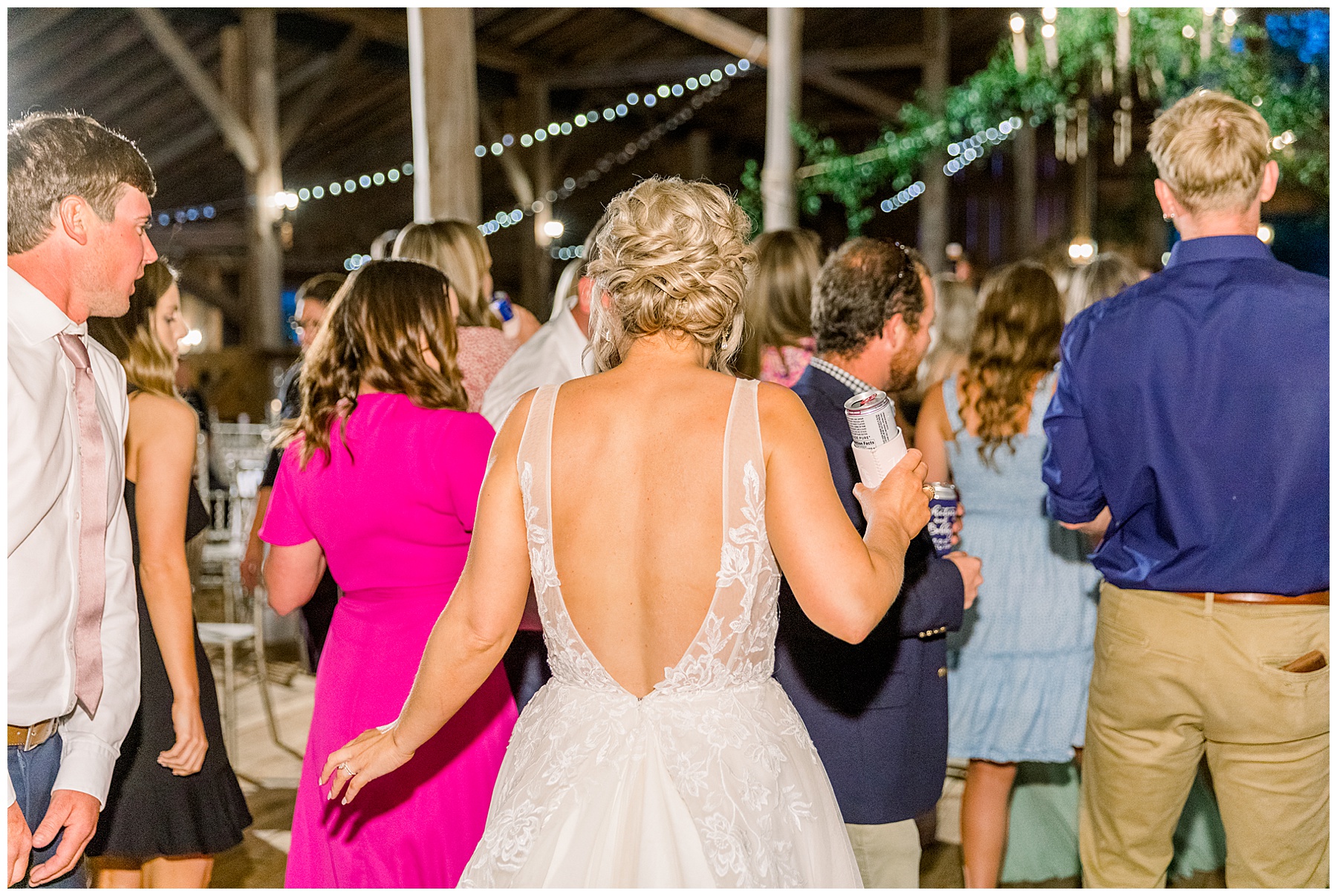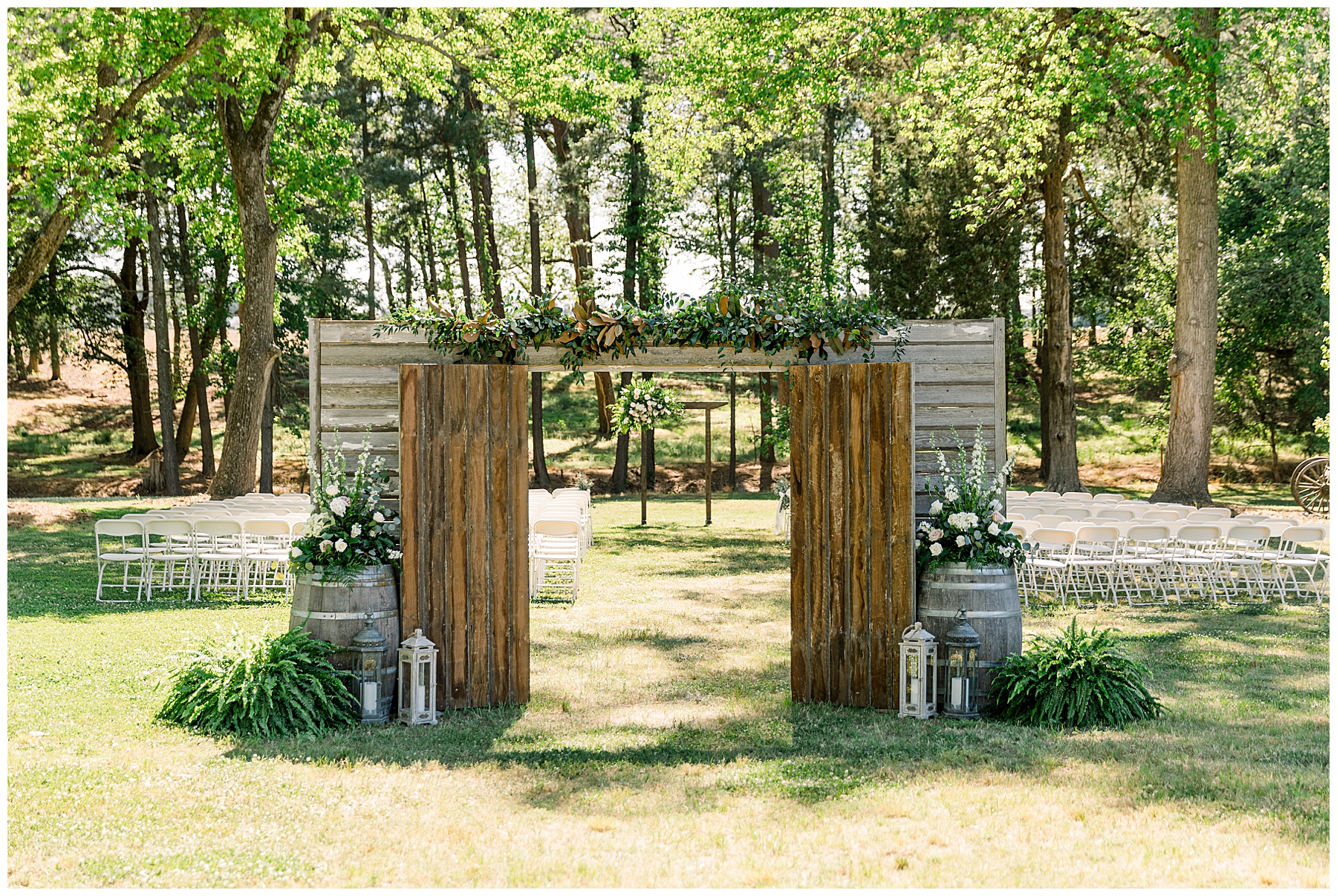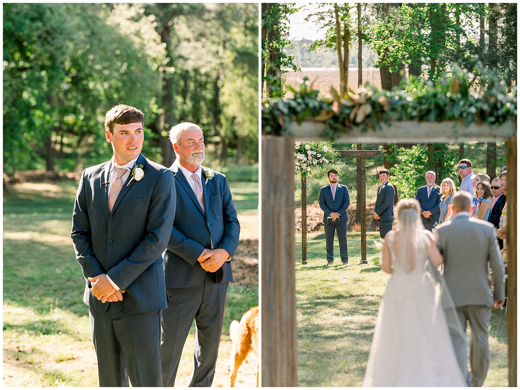 The ceremony was beautiful underneath the trees. Whitney’s dad built a beautiful arbor for them, and it had a gorgeous floral arrangement! Bobby’s cousin officiated the ceremony, and even the pups were included!