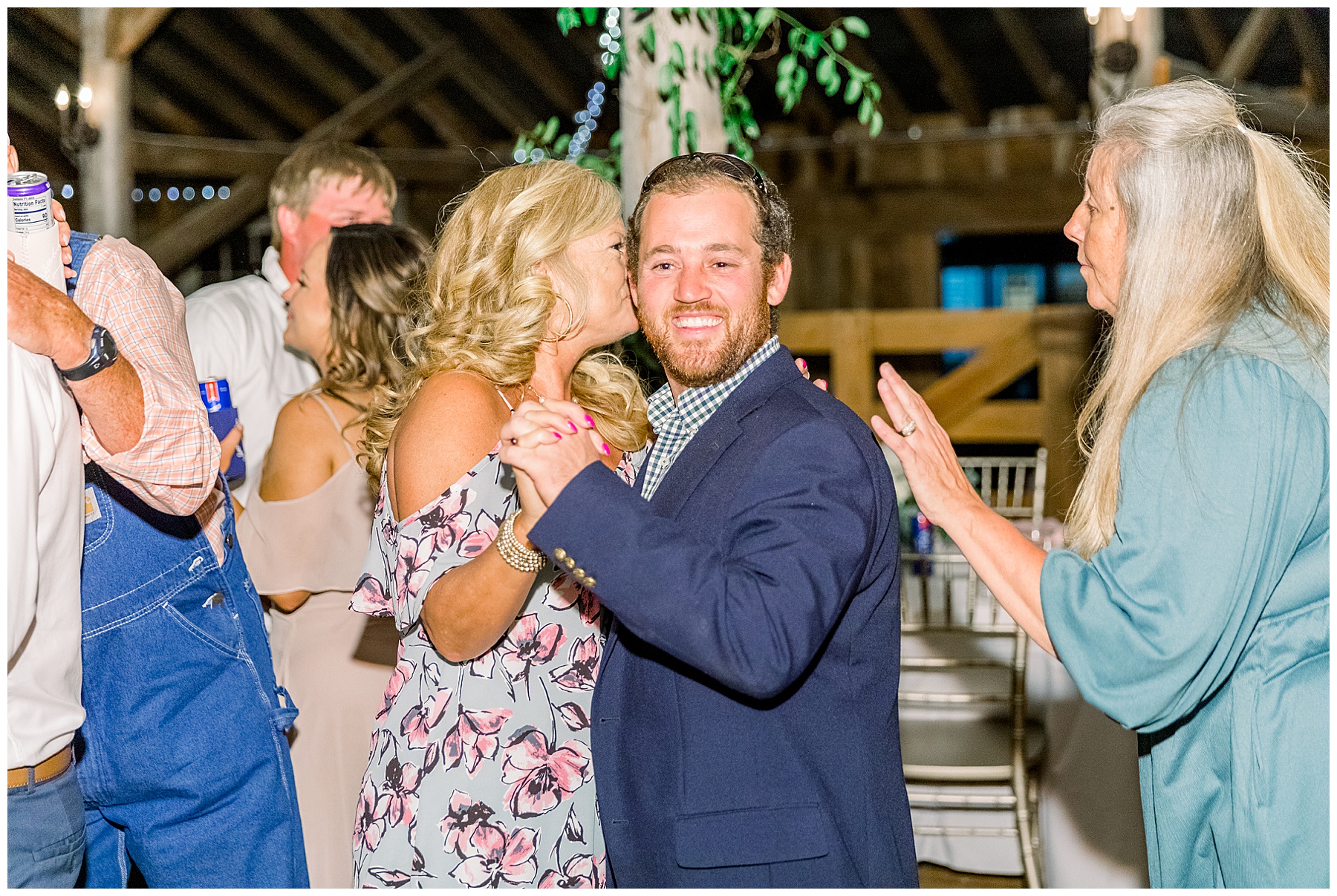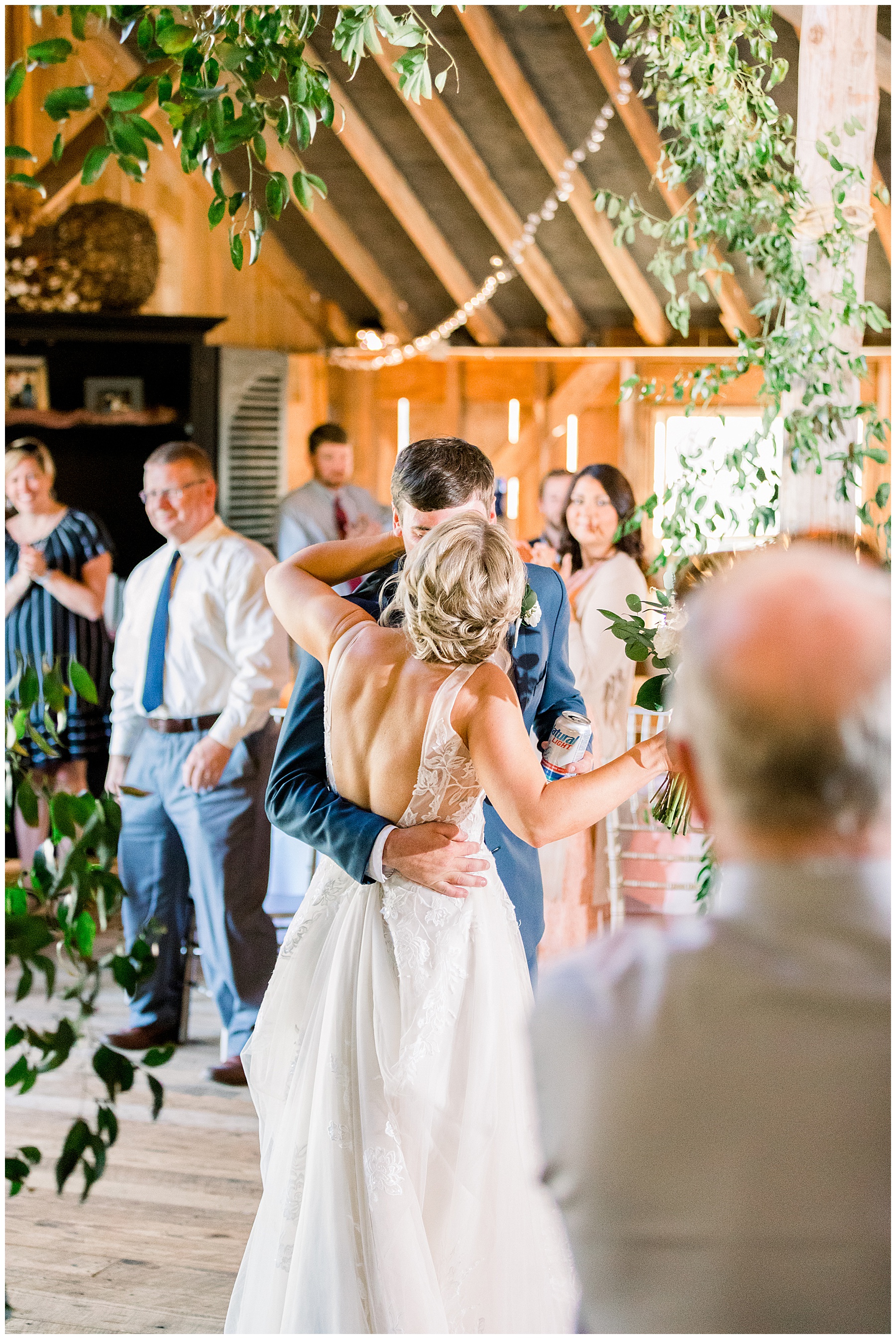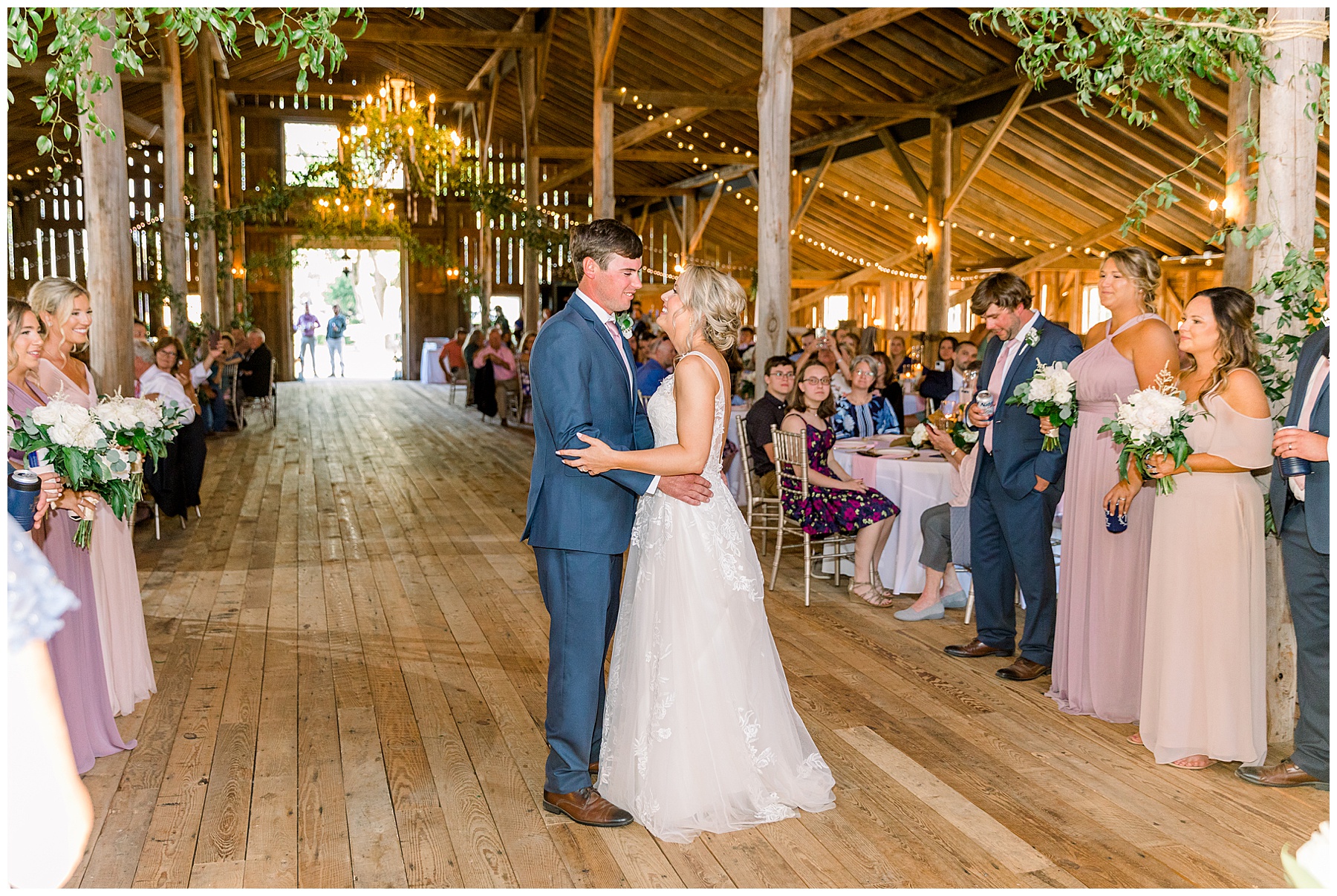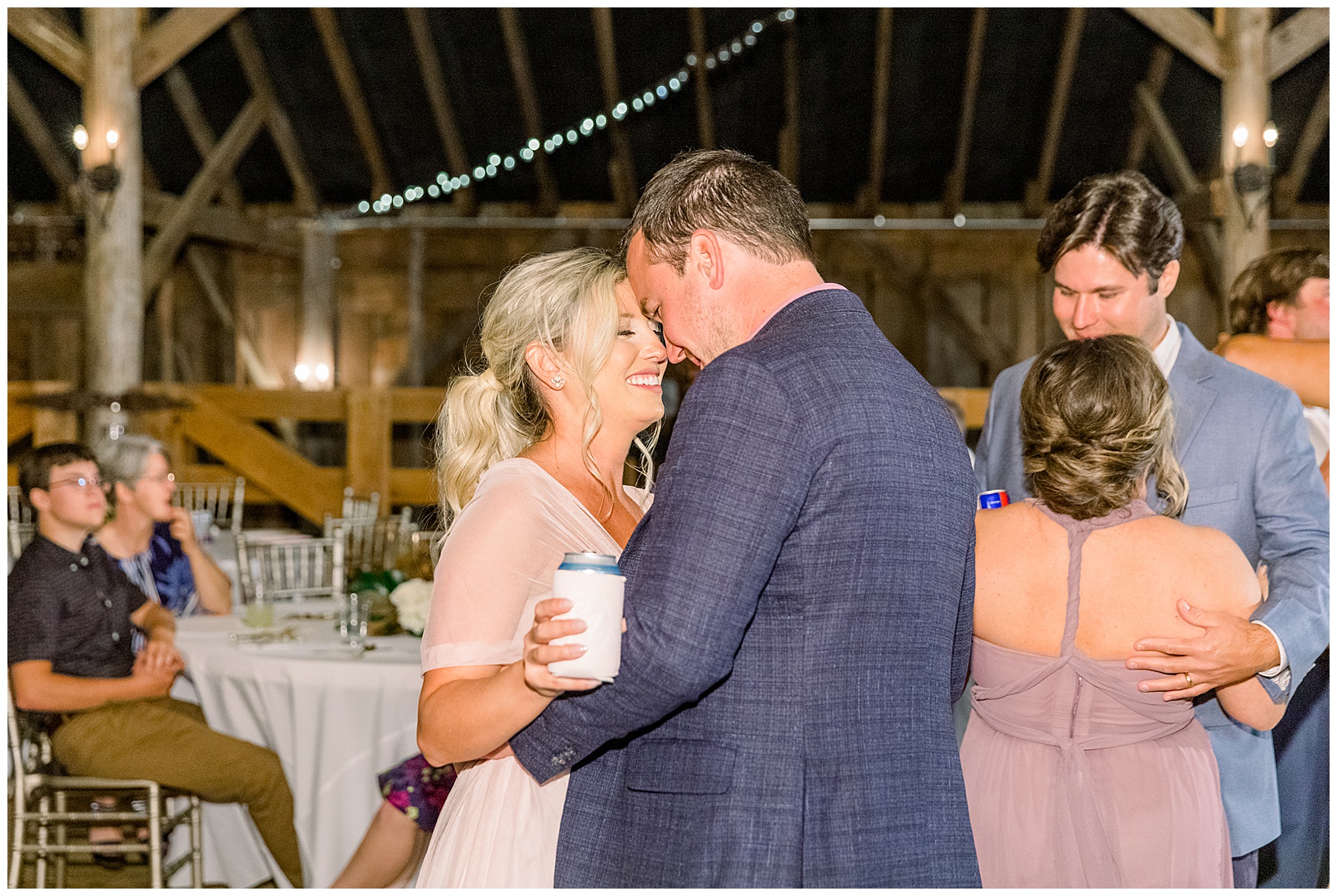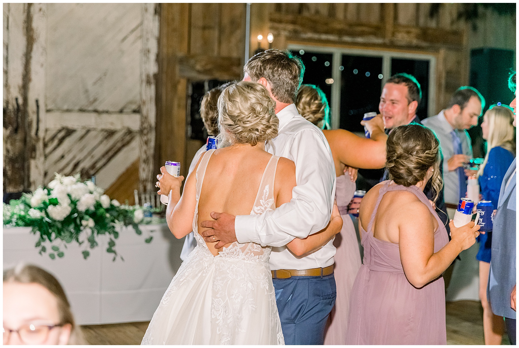 The ceremony was beautiful underneath the trees. Whitney’s dad built a beautiful arbor for them, and it had a gorgeous floral arrangement! Bobby’s cousin officiated the ceremony, and even the pups were included!