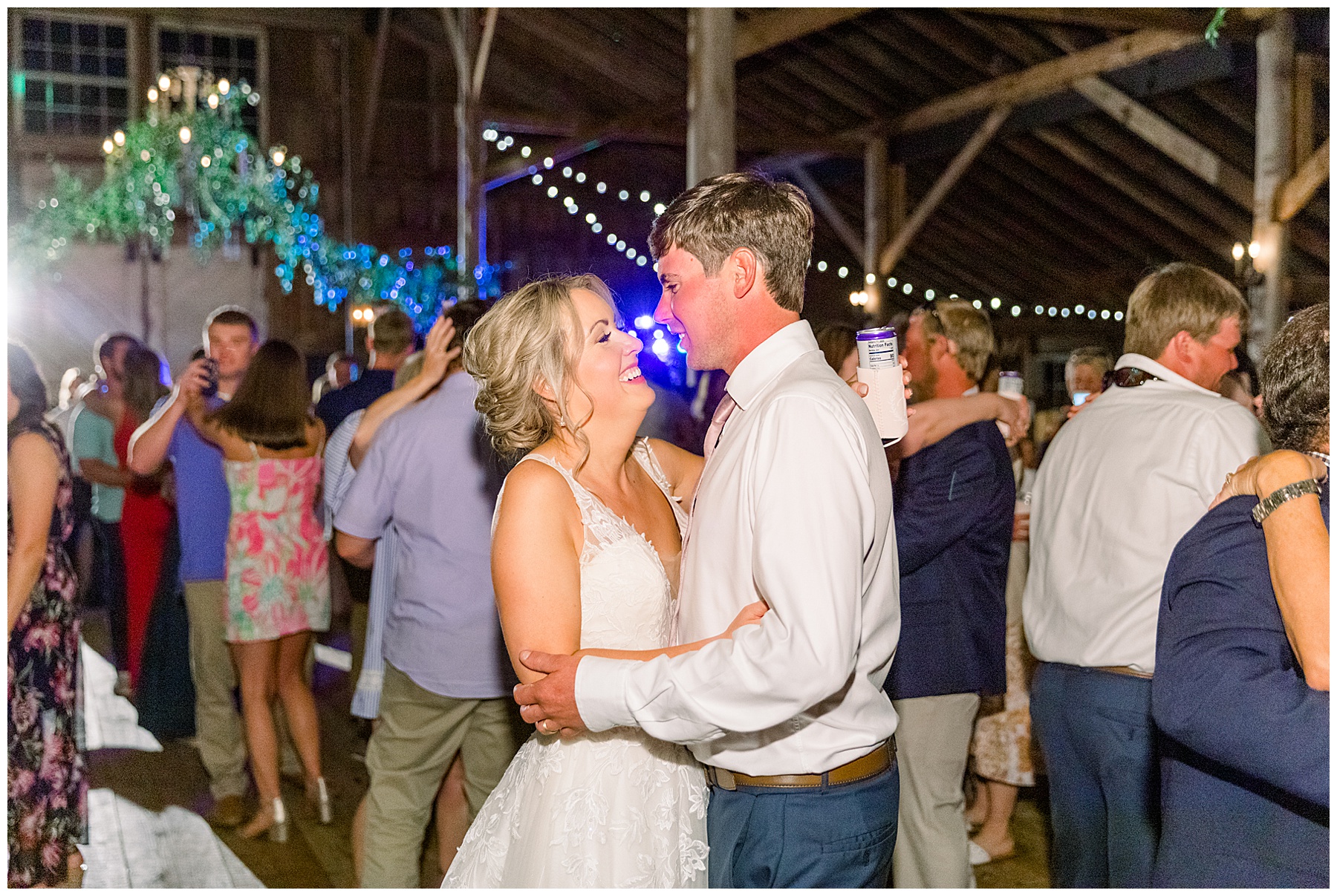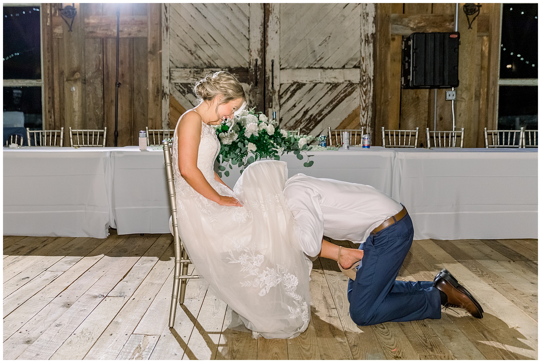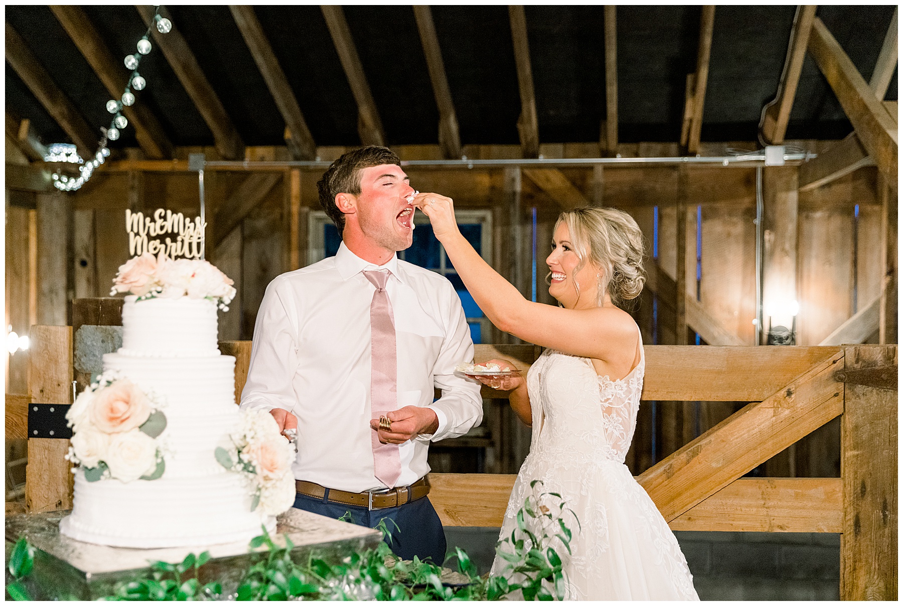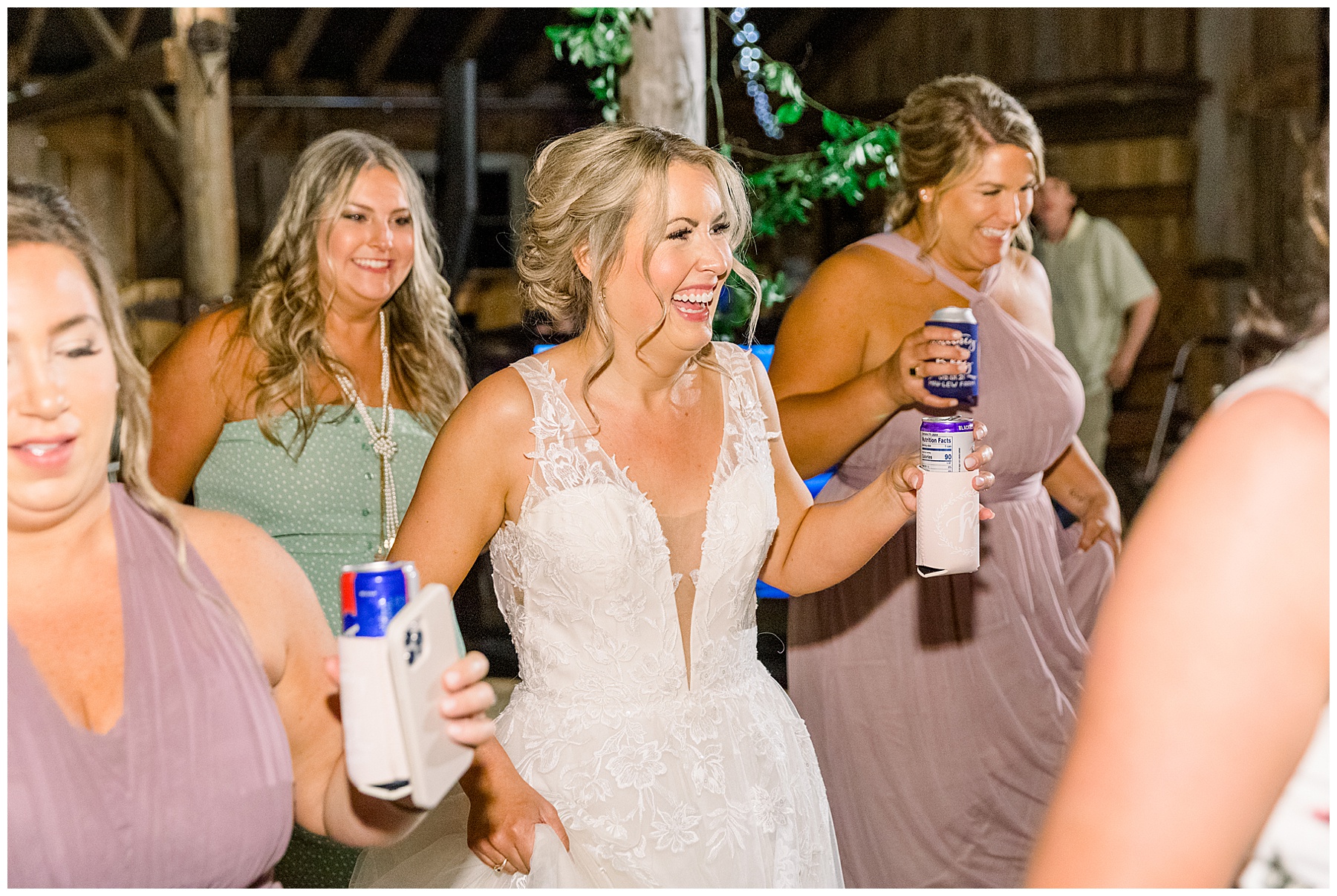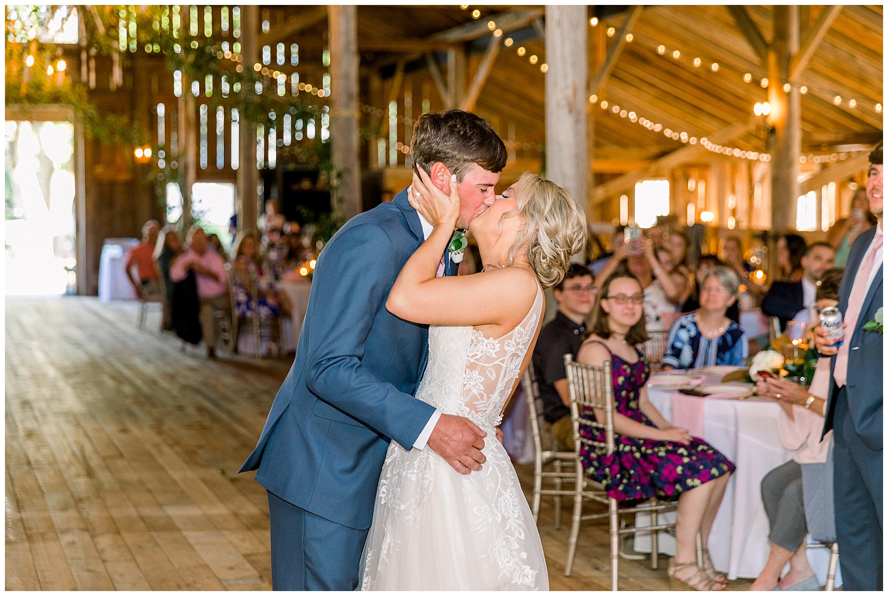 The ceremony was beautiful underneath the trees. Whitney’s dad built a beautiful arbor for them, and it had a gorgeous floral arrangement! Bobby’s cousin officiated the ceremony, and even the pups were included!