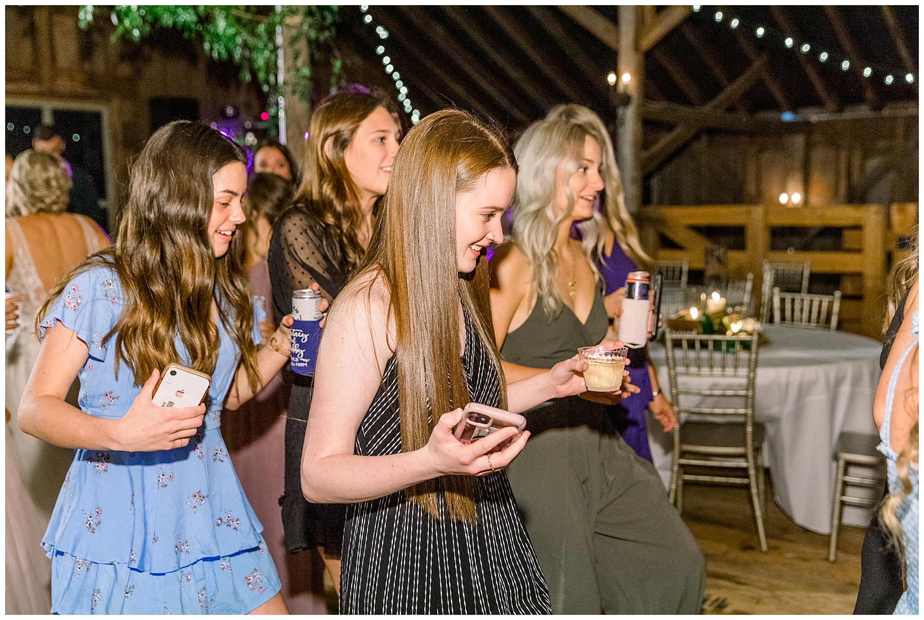 The reception kicked off with a bang thanks to some yummy food, cake, drinks, a photobooth, and dancing thanks to Impultz Entertainment! It was a perfect night to be outside, so they had a fire roaring in the outdoor fireplace, and people enjoyed just chatting outside and relaxing.